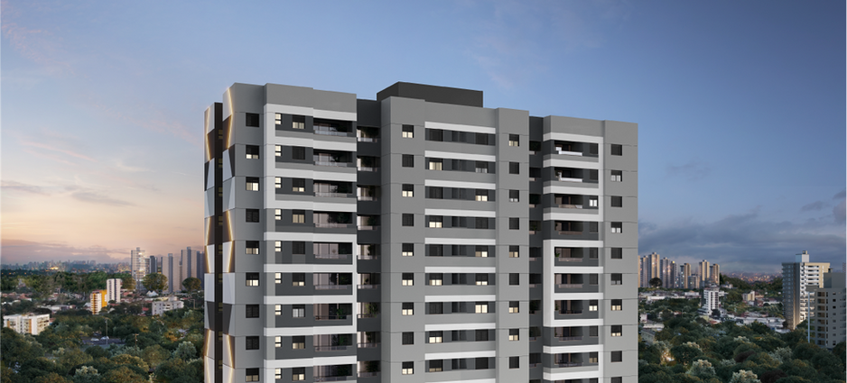 Nº Total de Andares: 2 subsolos + térreo (com lazer e unidades garden) + 15 andares tipo